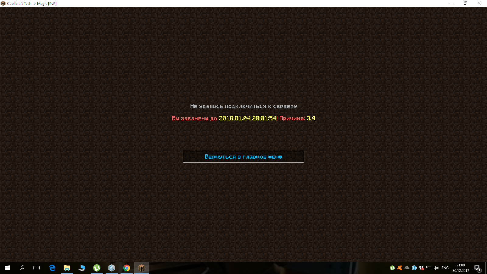 [20:01:55] [Server thread/INFO]: kirillow lost connection: Вы были временно забанены Svitoij. Причина: 3.4