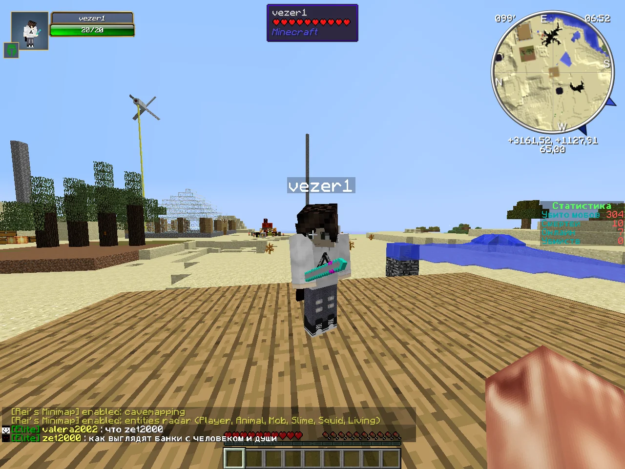 Я зашел на сервер..До меня сразу телепортнувся Valera..Потом он выпил Зеля НЕ видимости..И он поставил алмазные блоки я сразу понял шо это он навмисне.Потим я поюачив человека, который строит я подошел и увидел строит дим.Я пошел и здесь взад меня вдирив Valera2002 или Vezer1.пострадало еще мног.непомню кто.
